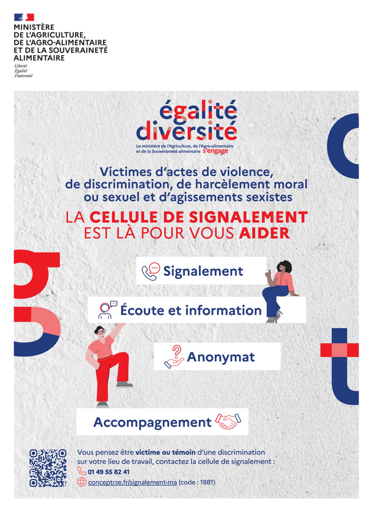- contacter la cellule de signalement des discriminations du MASA.